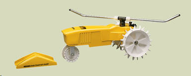 Automatic shut-off Cast-iron with chip resistant, powder-coat paint Water Tractor This machine also follows the path of the hose, but this time the rotating arms drive the rear wheels propelling the machine along dragging the hose behind it