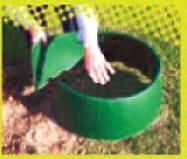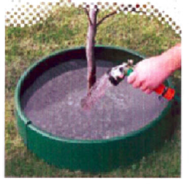 Concentrates water around the root zone Promotes deep root watering and therefore more robust healthy trees Prevents scatter of mulch and soil. Prevents plant damage by tools (strimmers etc.) Is height adjustable and reusable 2 sizes :- Small 43 x 19cm holds 26Lt Large 60 x 25cm holds 50Lt