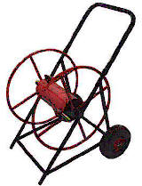 Heavy duty professional hose trolley for proper storage and safe transport of hose: The robust hose trolley, is made of steel, plastic coated in red and black colour, with 1" brass coupling connection Width of the reel, 390 mm, Max. Capacity 100 m 1" hose reeled in layers. Two pneumatic plastic tyres. Dimensions: 75x75x80 cm |